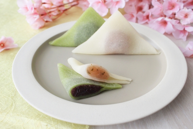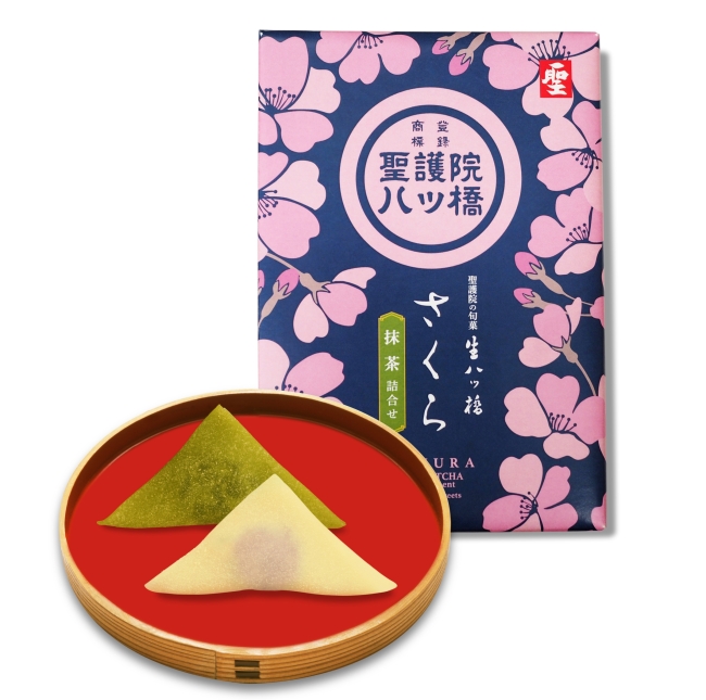細かく刻んだ桜葉塩漬を混ぜ合せた「桜あん」を包んだ生八ッ橋と、定番のあん入り生八ッ橋「聖 抹茶」との詰合せ。あたたかいお茶と一緒に、ゆっくり味わいたいですね!