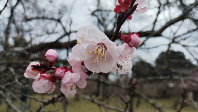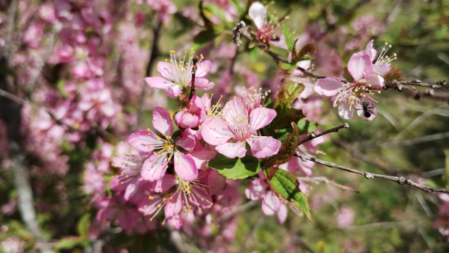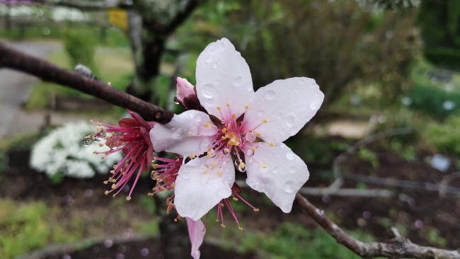 ソメイヨシノが咲く同じころ、ニワウメ、ユスラウメ、アーモンド、アンズなどサクラの仲間が咲きだします。これらの植物はみなバラ科という植物群に含まれ、その中でモモ亜科と呼ばれる群に分類されています。