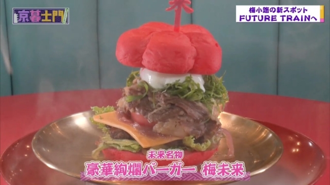 梅の形をしたバンズ、梅チップ等が入ったハンバーガーをいただきます♪