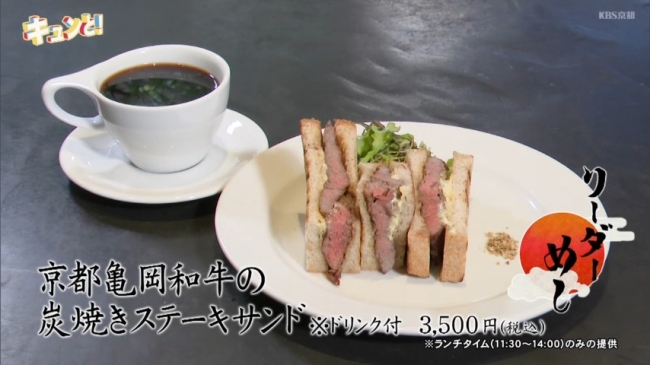 炭火で焼き上げた「亀岡牛」を京都産小麦の全粒粉パンで挟んだステーキサンド。