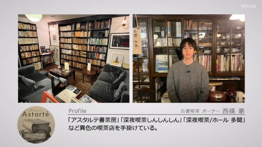 2020年、在学中に「深夜喫茶しんしんしん」。2024年に木屋町にある「深夜喫茶/ホール 多聞」を開業。2025年には、幻想文学・異端文学などを扱う、知る人ぞ知る古書店だった「アスタルテ書房」を引き継ぎ、コーヒーや、お酒も飲める空間に改装「アスタルテ書茶房」としてオープンさせました。